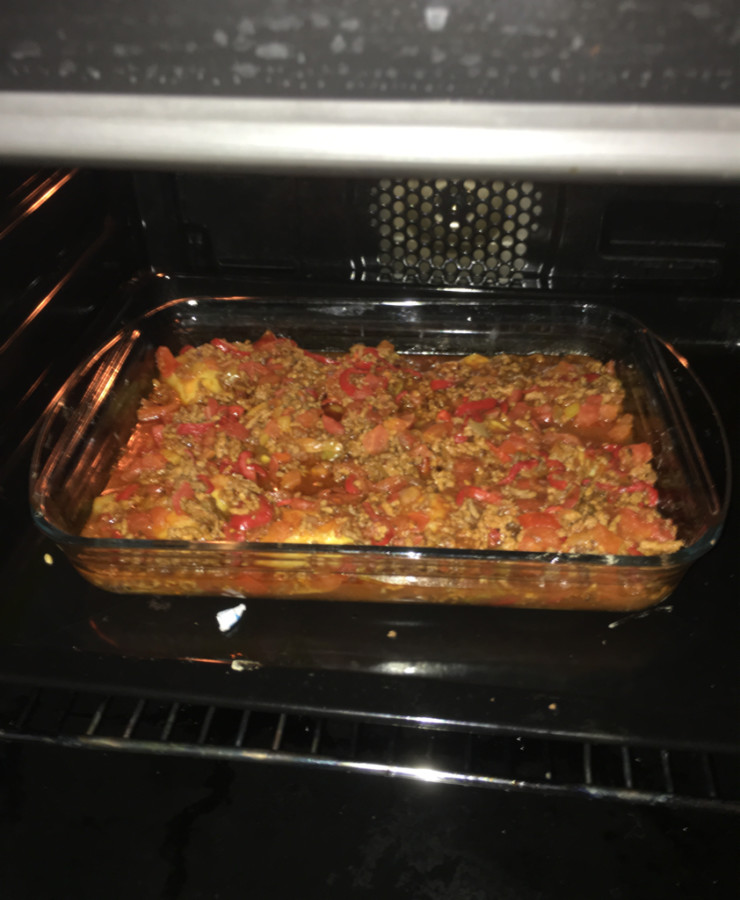 - Kıymalı harcı pişen patateslerin üzerine gezdirin,