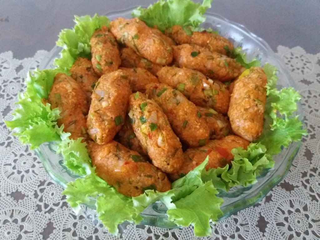 - Kıyılmış maydanoz, pul biber, sumak, nar ekşisi, cevizi de ekleyip yoğurun ve elinizle sıkarak şekillendirin,