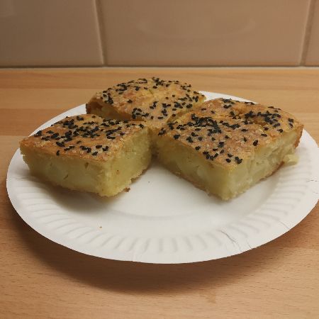 Malzeme miktarı az ve porsiyon az gibi görünebilir ama kek patatesten dolayı doyurucu bir yapıya sahip olduğu için dilimler küçük olsa da yetiyor.