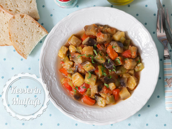 Yemeğimizden bahsetmeden bitirmeyelim yazıyı. Yapımı gerçekten inanılmaz kolay. Tüm yaz sebzelerini doğrayıp bir tencereye dolduruyorsunuz. Karıştırmanıza bile gerek yok. Tencerenin kulplarından tutup mısır patlatırken olduğu gibi tencereyi sallıyor/silkiyor/sarsıyorsunuz. Bu işlem için hangi fiili kullanıyorsanız onu yapıyorsunuz.