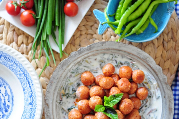 Havalar yavaş yavaş ısınmaya başladığına göre hafif yazlık tariflere geçmeye başlayabiliriz bence. Mesela soğuk zeytinyağlılar biraz daha sık yer almaya başlayabilir bugünlerde. Hem öğünlerimiz hafifler hem de enginar ve bakla gibi mevsim sebzelerinin tadını çıkarabiliriz böylece. Bir başka seçeneğimiz de bu nefis pazılı bulgur köftesi. Altı sarımsakla yoğurtla harmanlanmış pazı, üzerinde ise toz biberle sotelenmiş bulgur köftesi var.