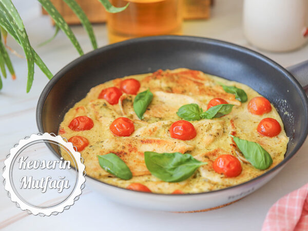 Farklı bir tavuk yemeğim var sizler için bugün. Pesto sosu çoğu zaman ağır bulurum ama az miktarda kullanıldığı için bu yemeğe oldukça yakıştı. Özellikle tavuk göğsü kuru bulup nasıl pişireceğini bilemeyenler için çok kurtarıcı bir tarif.