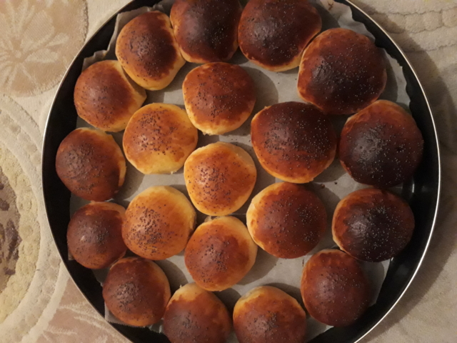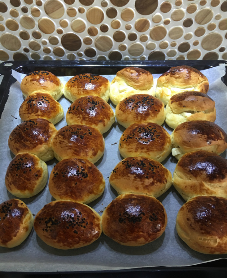 - Poğaçaların üzerine bu karışımdan sürün,