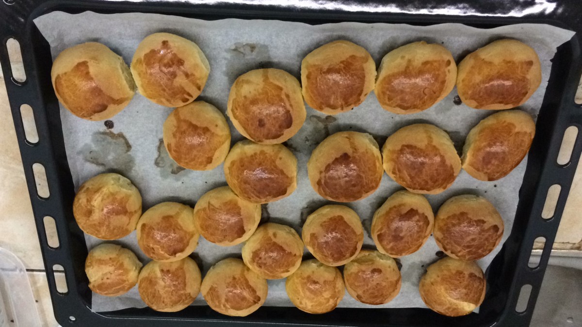 - Hamurdan Küçük toplar koparıp içine peynirli harçtan koyup yuvarlayın,