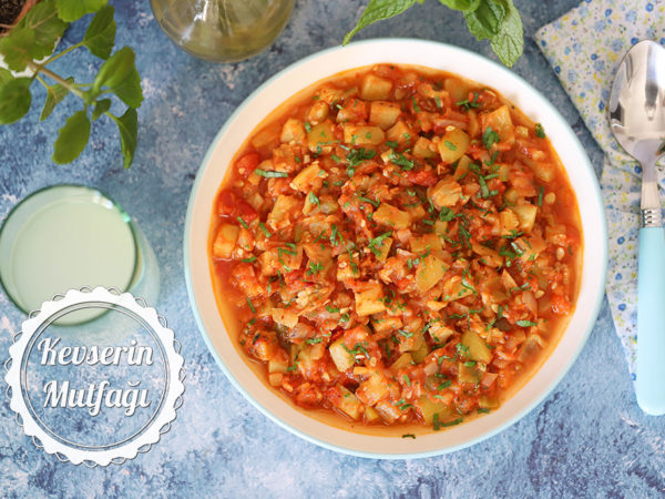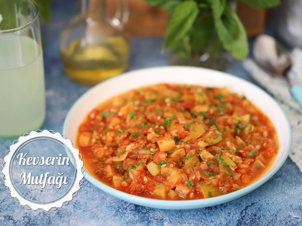 - Soyup küçük küçük doğradığınız kabak ve patlıcanları ekleyip karıştırın,