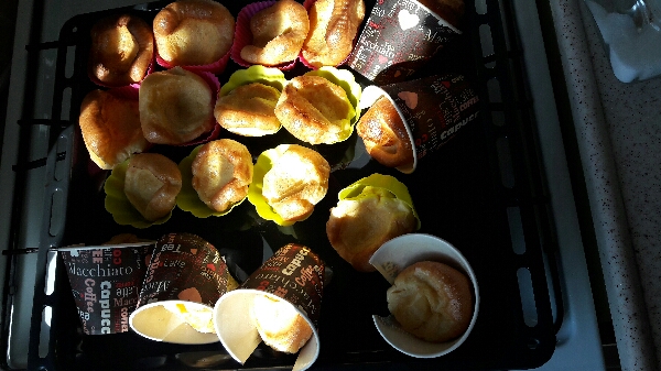 Bildiğimiz krep hamurunu muffin kalıplarına dökerek fırına veriyoruz. Başlarda hiç kabarmayacaklar gibi geliyor ama son dakikalara doğru durdurabilene aşkolsun. Fırından çıkardıktan sonra hemen kalıplarından alırsanız yamuk yumuk olurlar. Kalıplarında bir süre soğumalarını beklemek daha düzgün şekilli olmalarını sağlayacaktır. Bir de fırındayken bazıları lezzetten çatlıyor ve içlerindeki hava boşalıyor, o zaman da sönüyorlar, onun için yapacak bir şey yok ne yazık ki.