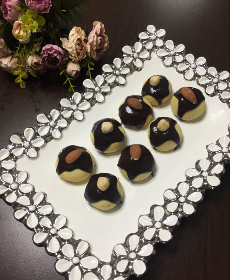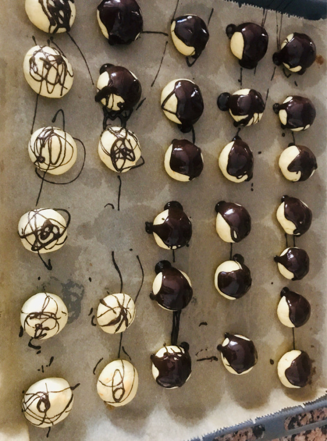- Karışımdan minik parçalar alıp yuvarlayın ve yağlı kağıt serilmiş bir tensiye dizin,