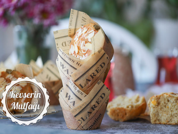 - Karışımı muffin kalıplarına paylaştırıp üzerlerine file badem serpin,