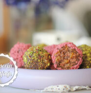 - Karışımdan küçük toplar yapıp çekilmiş fıstığa, çikolataya ya da istediğiniz başka bir malzemeye bulayın.
