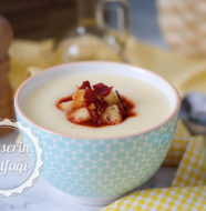 Çorbanın kendisinde yağ kullanılmıyor evet ama gerek de yok zaten. Yağı yemeklerde olmazsa olmaz bir malzeme olarak düşünmeyin. Yağ genellikle lezzet verici olarak değil yemekte kullanılan malzemelerin lezzetini ortaya çıkarmak için kullanılır. Bir tencereye yağ, soğan, salça, mercimek ve suyu koyup kaynatarak elde ettiğiniz mercimek çorbasıyla, soğanı ve ardından salçayı yağda kavurarak elde ettiğiniz mercimek çorbasının tadı aynı olmaz. Pumpum çorbasında kavrulan, kavrulması gereken bir malzeme olmadığı için yağa da gerek yok. Kaldı ki et suyunun yağı zaten var. Üzeri için hazırlanan malzemelerdeki yağlar da cabası.
