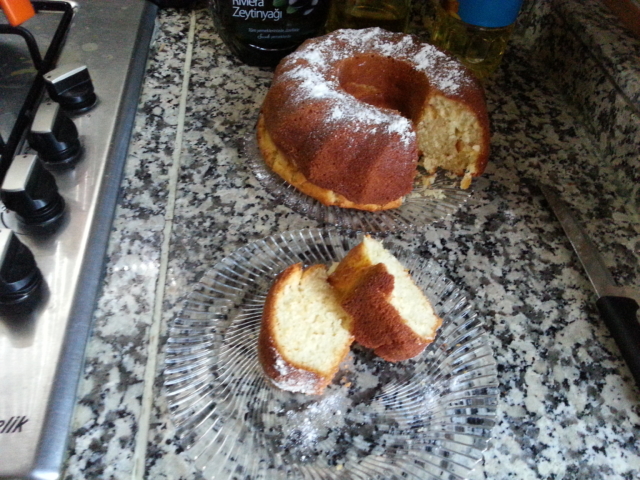 - Kek harcını yağladığınız 21 cm'lik kek kalıbına boşaltıp 190 derecede önceden ısıtılmış fırında kürdan testi temiz çıkana kadar (35-40 dk.) pişirin.