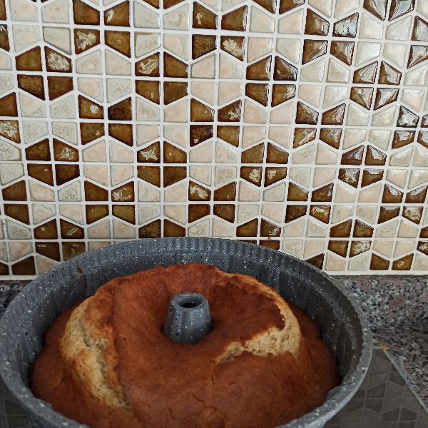 - Kek harcını yağladığınız 21 cm'lik kek kalıbına boşaltıp 190 derecede önceden ısıtılmış fırında kürdan testi temiz çıkana kadar (35-40 dk.) pişirin.
