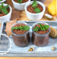Ben sizlerin tam olarak görmesi için bir kısmını tam kaplarda hazırladım. Ancak siz misafirlerinize ikram sırasında küçük bir şok yaşatmak istiyorsanız servisi cam değil porselen kaplarda yapın. Fotoğraflarda da göreceğiniz üzere porselen kaplarda olanlar tam birer çiçek saksısı oldu. Yerken de taze naneyi mutlaka katık edin pudinginize, inanılmaz güzel bir lezzet katıyor çünkü.
