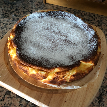 Fırından çıktığında hala bıngıldak oluyor, çünkü ortası hala sıvı kıvamda oluyor. Tarifi Türkçeleştirecek olsak ben bıngıldak cheesecake derdim hatta.