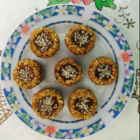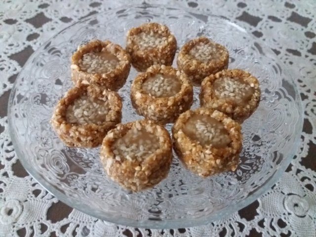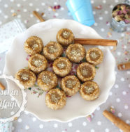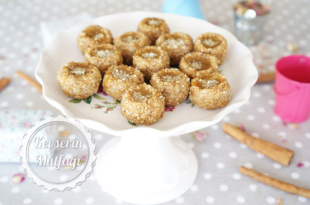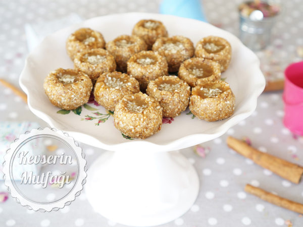 - Tüm hamuru bu şekilde top top yaptıktan sonra çekilmiş bademe bulayın.