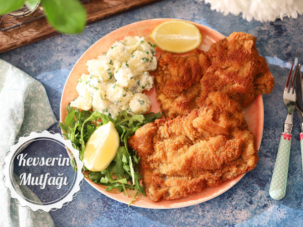 Şinitzeli et değil de tavukla yapmak isterseniz tavuk şinitzel tarifini kullanarak yapabilirsiniz. Şinitzeli erdäpfelsalat eşliğinde servis edebilirsiniz.