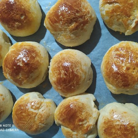 - Poğaçaları yağlı kağıt serilmiş bir tepsiye dizin,