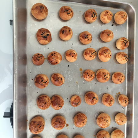 - Hamurdan küçük parçalar koparıp yuvarlayın ve fırın tepsisine (yağlamanıza ya da yaplı kağıt sermenize gerek yok) dizin,