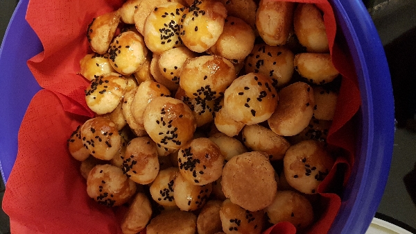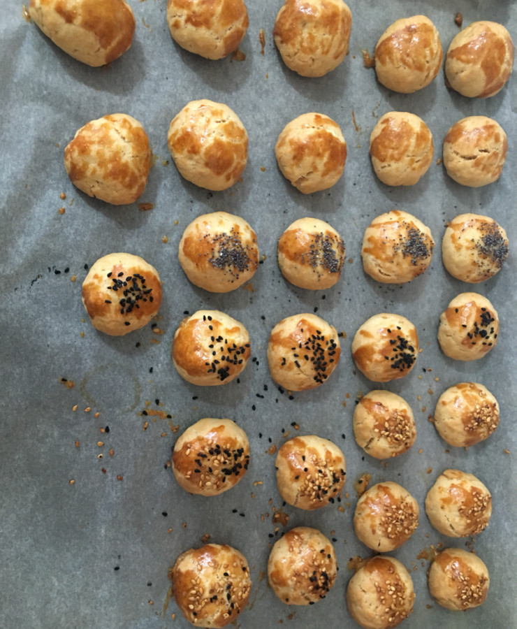 - Hamurdan küçük parçalar koparıp yuvarlayın ve fırın tepsisine (yağlamanıza ya da yaplı kağıt sermenize gerek yok) dizin,