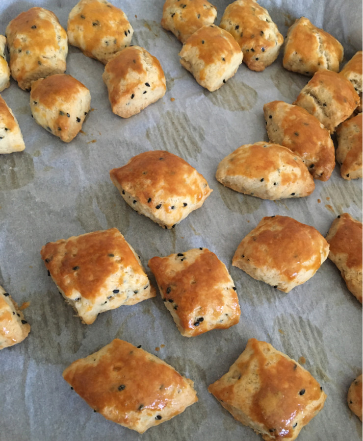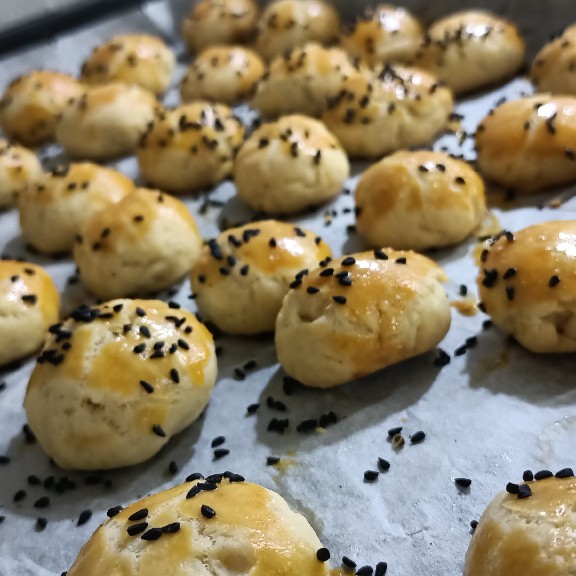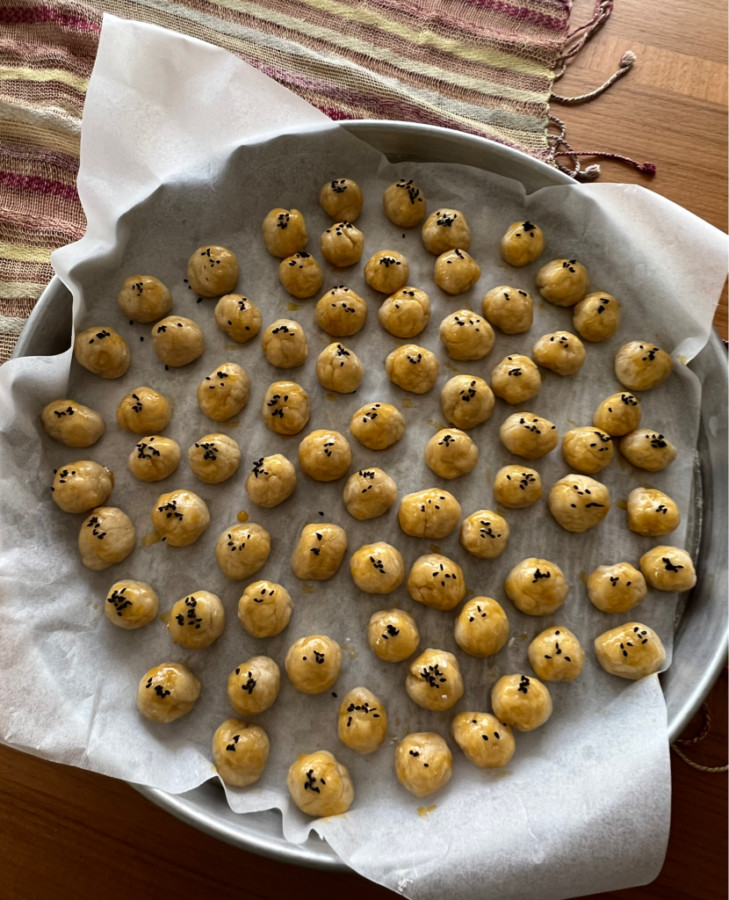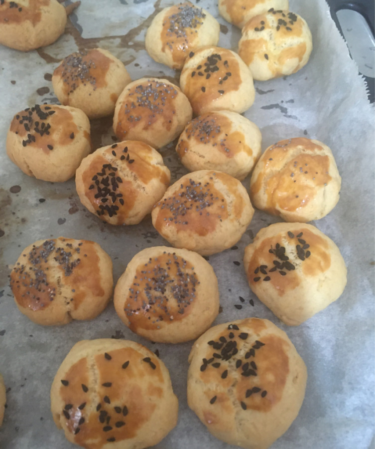 - Hamurdan küçük parçalar koparıp yuvarlayın ve fırın tepsisine (yağlamanıza ya da yaplı kağıt sermenize gerek yok) dizin,