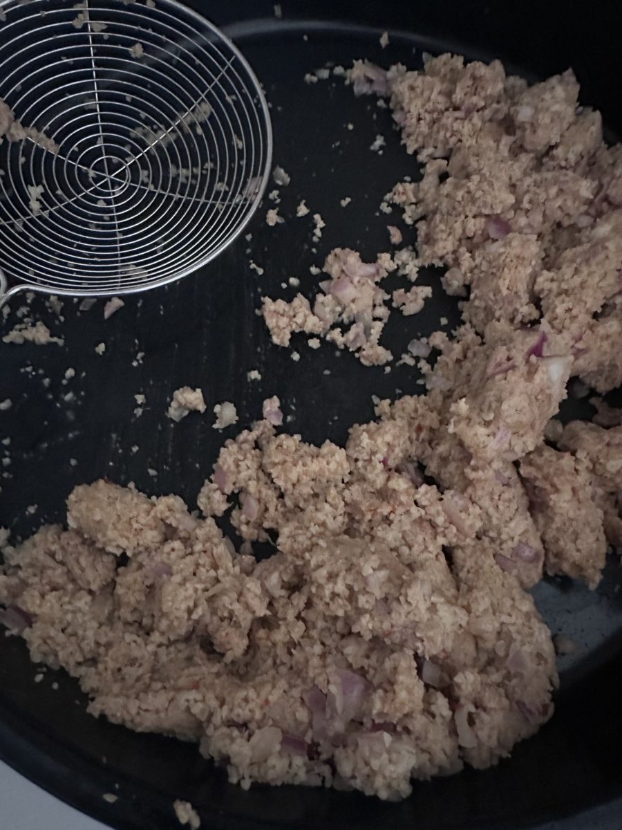 - Kıyma, rendelenmiş soğan, biber salçası, tuz ve karabiberi ekleyip macun kıvamına gelene kadar yoğurun,