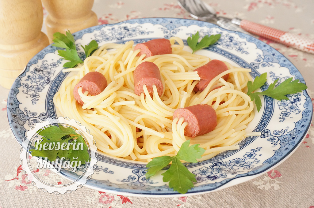 - Pişen spagettiyi süzüp sosa ekleyin,