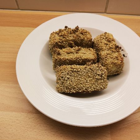 Yapımı mantığında çok basit ama yaparken biraz can sıkıcı olabiliyor. Normalde bir malzemeyi un, yumurta ve ardında galeta ununa bulayarak kızartma işlemine zaten aşinasınızdır sanıyorum. Bu tarif de aynı mantıkla hazırlanıyor, tek farkı dışında galeta yerine susam kullanılması.