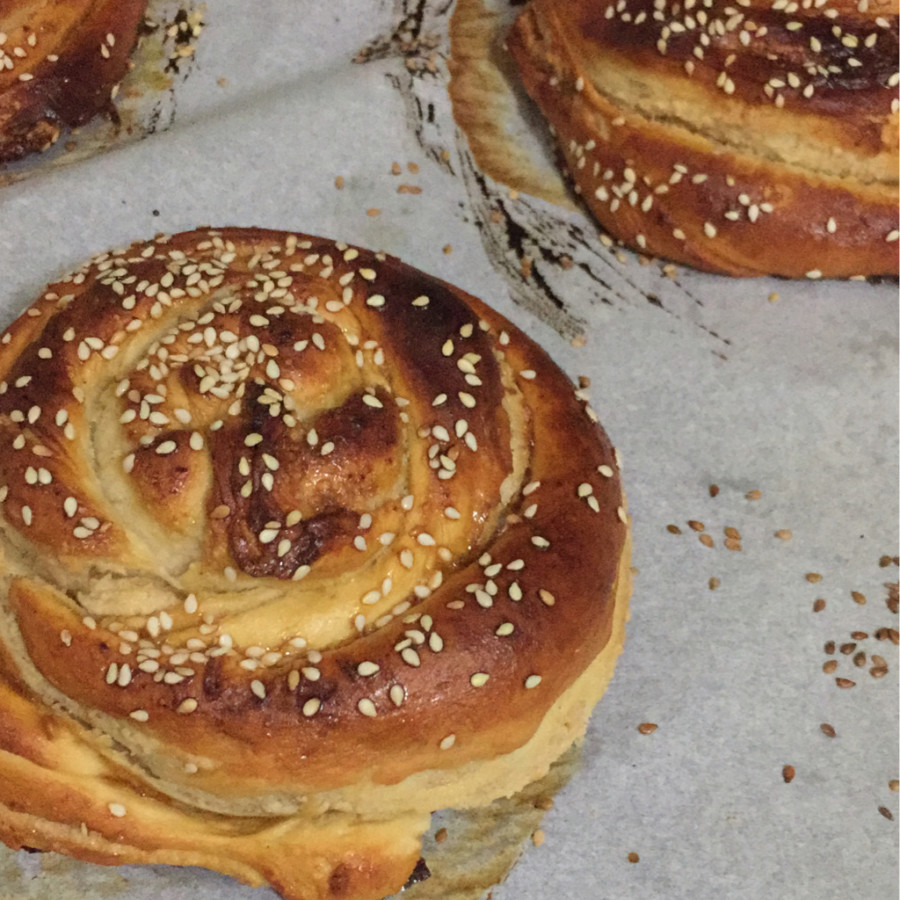 - Karışımı çöreklerin üzerine sürün ve susam serpin,