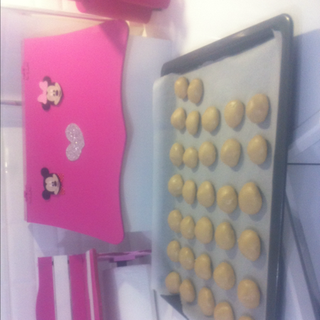 - Hamurdan küçük parçalar koparıp yuvarlayarak fırın tepsisine dizin (yağlamanıza veya yağlı kağıt sermenize gerek yok),
