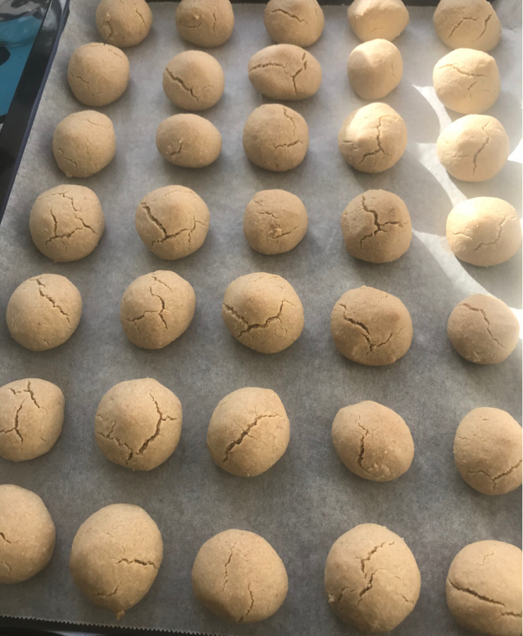 - Hamurdan küçük parçalar koparıp yuvarlayarak fırın tepsisine dizin (yağlamanıza veya yağlı kağıt sermenize gerek yok),