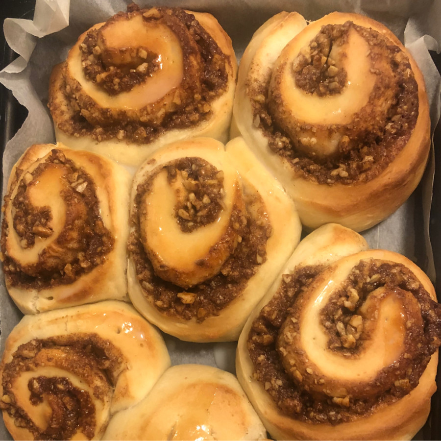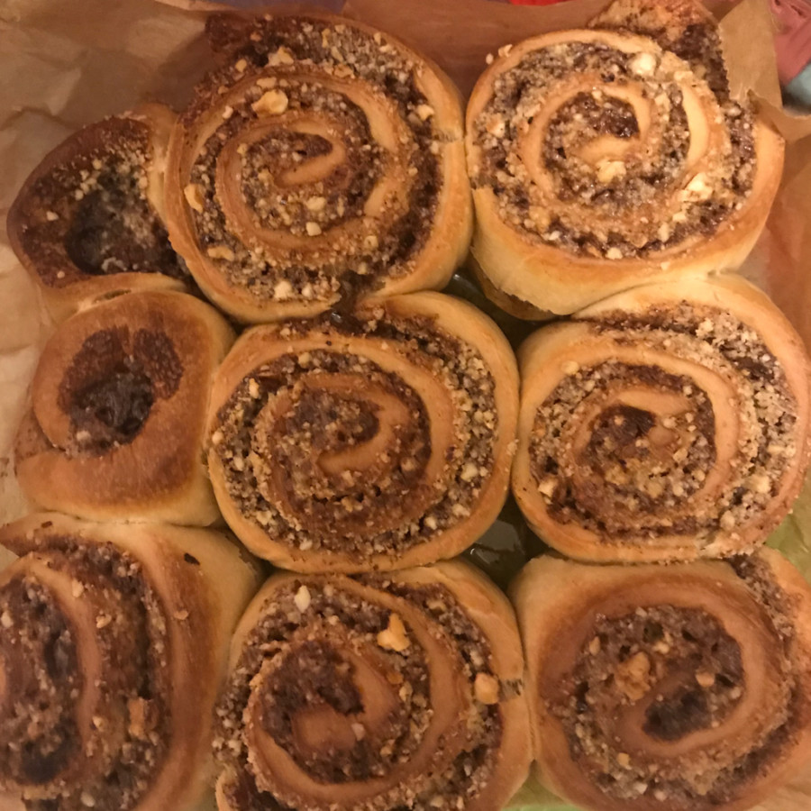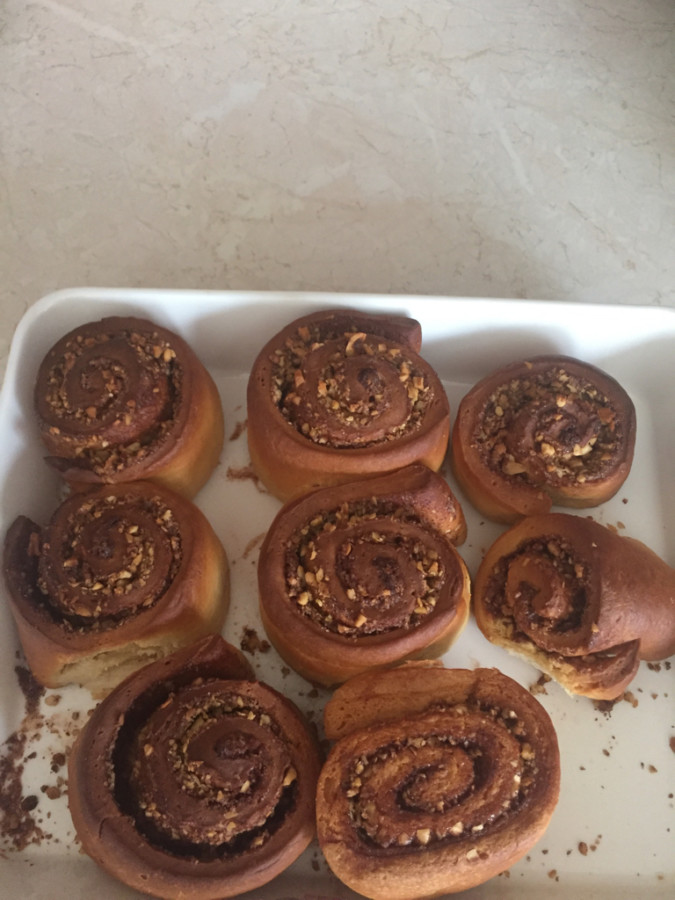 - Üzerine tarçınlı karışımı sürüp fındık ve cevizi serpin,