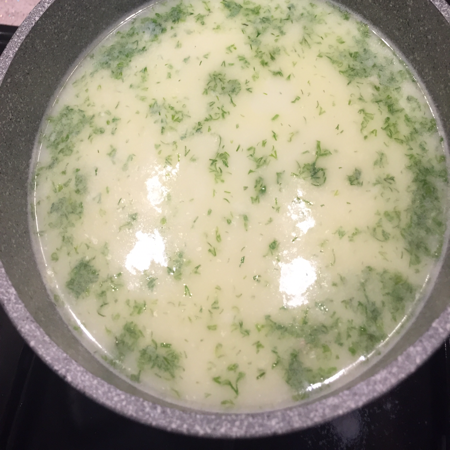 - Damak zevkinize göre kıyılmış dere otu veya maydanozu ekleyip karıştırın.