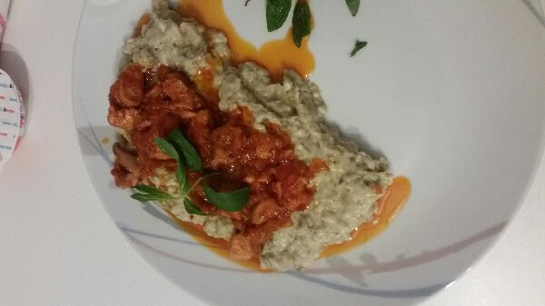 - Patlıcan beğendiyi servis tabaklarına paylaştırıp üzerine tavuklu harçtan koyarak servis yapın.