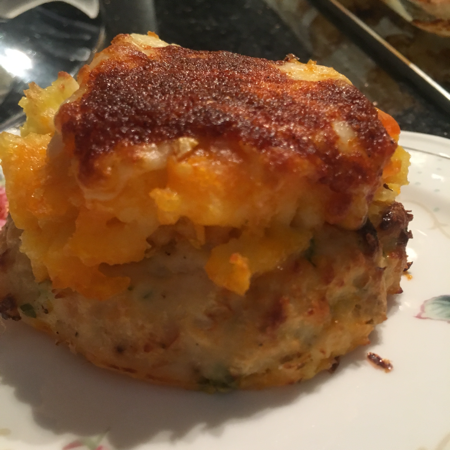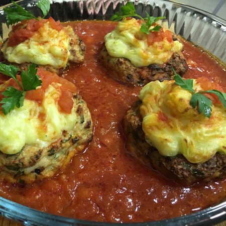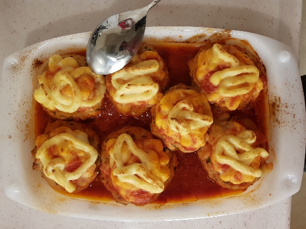 - Köfteleri fırından çıkarıp çukurlarına patates püresini sıkma torbasıyla sıkın veya kaşıkla yerleştirin,