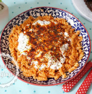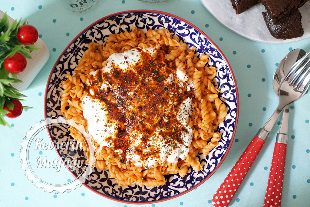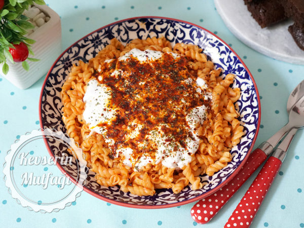 - Makarnayı tabaklara paylaştırıp üzerine sarımsaklı yoğurt gezdirin,