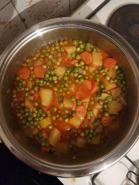 Bezelyeyi ekledikten sonrası zaten kolay, kendi halinde pişiyor yemek. Ama her yemekte olduğu gibi başı boş bırakılmamalı elbette. Arada kapağını açıp şöyle bir çevirip suyu, kıvamı, pişip pişmediği kontrol edilmeli. Pişip pişmediğini anlamak için sebzelere çatal batırma testini uygulayabilirsiniz. Çatal kolayca batıyorsa pişmiş, çatalı batırdığınızda sertliği hissediliyorsa henüz pişmemiş demektir. Daha garanti kontrol yöntemi ise tadına bakmaktır hiç şüphesiz ki.