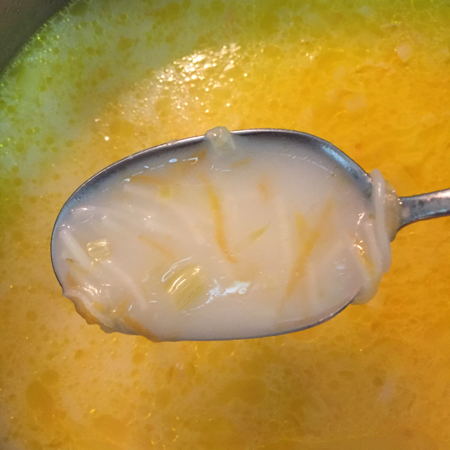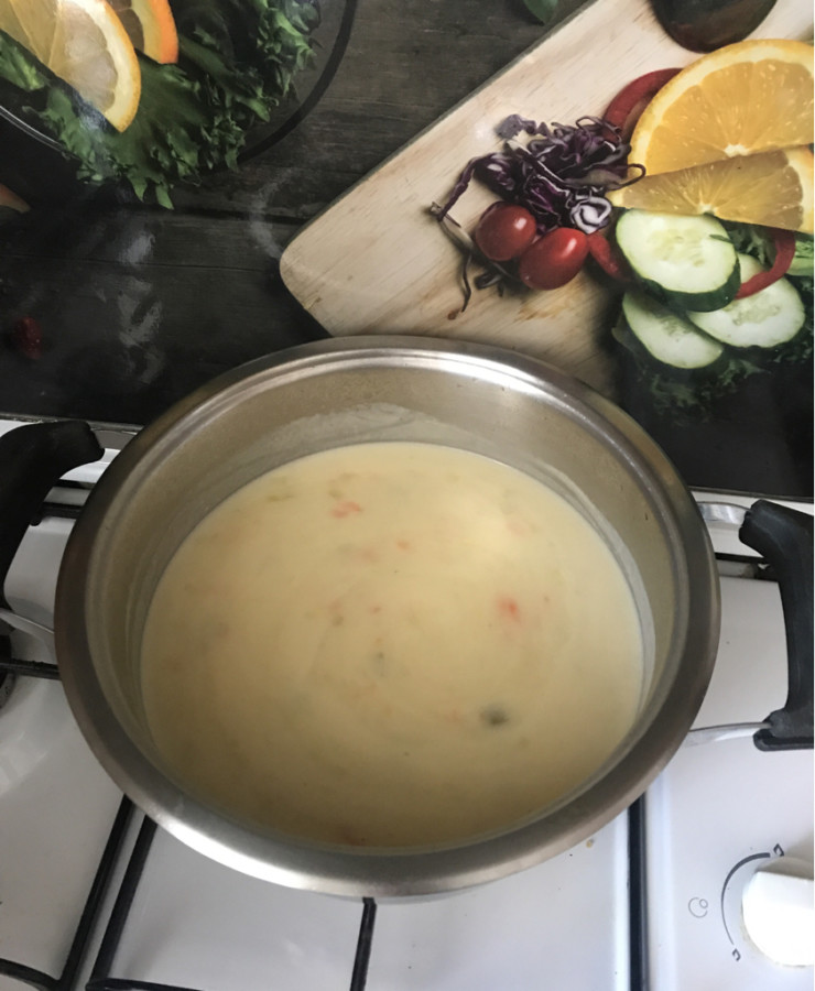 - Terbiye ılınınca tamamını çorbanın içine döküp hızlı hızlı karıştırın,
