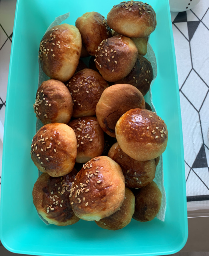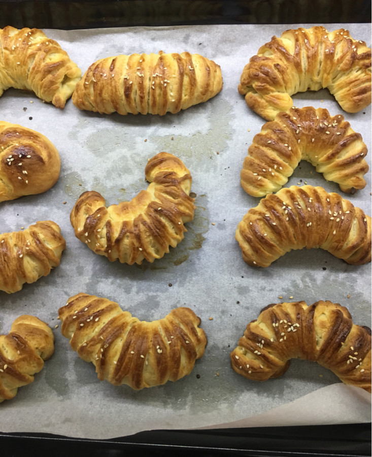 - Üzerlerine kenara ayırdığınız yumurta sarısını (içine çok az şeker ekleyebilirsiniz) sürüp çörek otu ve susam serperek yağlı kağıt serilmiş tepsiye dizin,