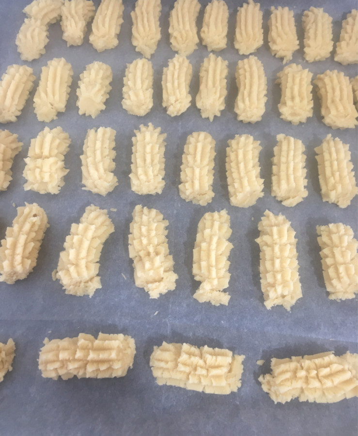 5. Hamuru tırtıl kurabiye kalıbı ile yağlı kağıt serili fırın tepsisine sıra sıra sıkın,