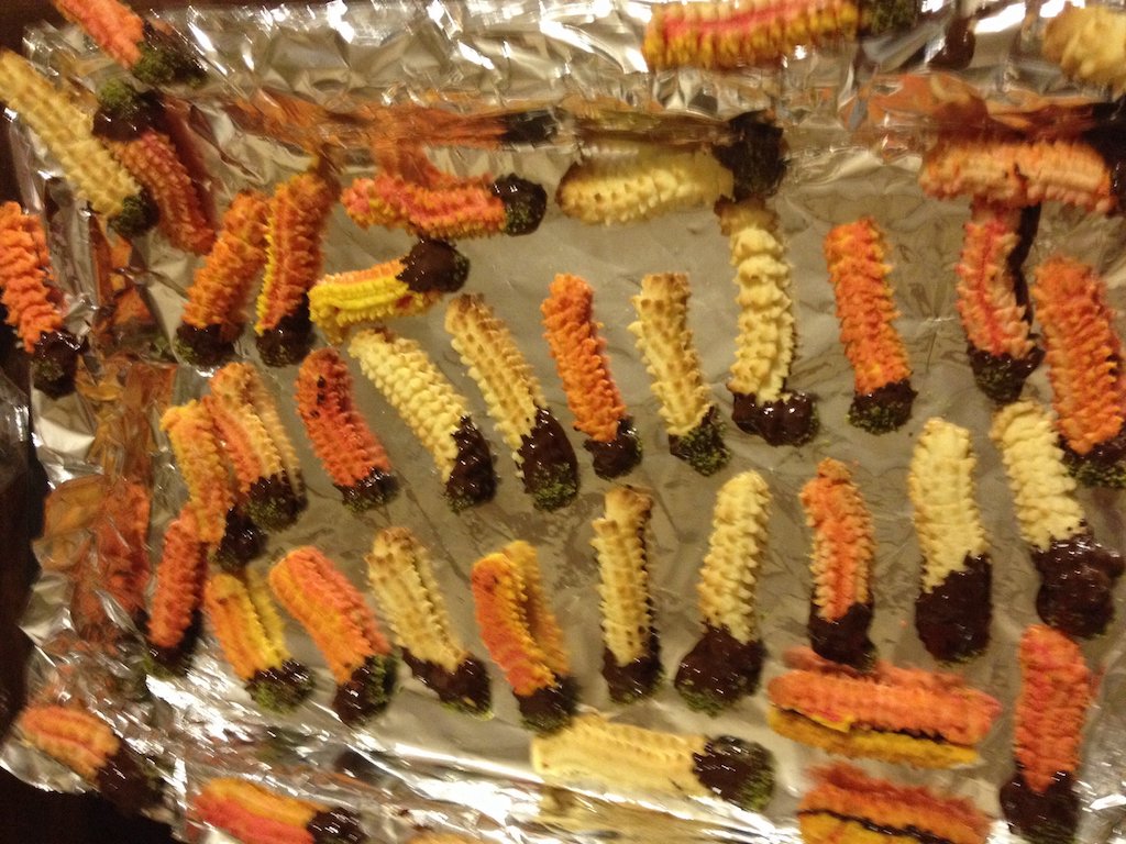 - Hamuru tırtıl kurabiye kalıbı ile yağlı kağıt serili fırın tepsisine sıra sıra sıkın,