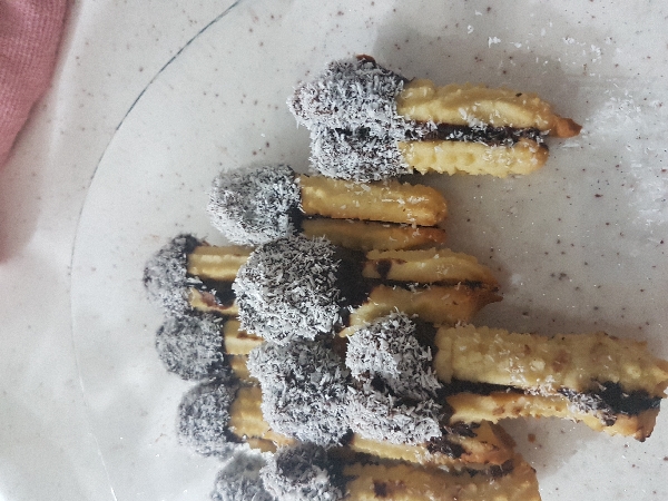Ama henüz bu ön yargılardan nasibini almamış bir çocuk size gerçek fikrini söyleyecektir. Bunları anlatıyorum çünkü bu tarif iki çocuğun olurunu almış bir tariftir. Eşiminin yeğeni Emre'yle vakit geçirdiğimiz bir gün oyun oynamak dışındaki aktivitemiz bu kurabiyeler oldu. Emrenin minik elleri kurabiyenin şekillendirme aşamasında güçsüz kalmış olsa da çikolataya ve hindistan cevizine bulama aşaması oldukça hoşuna gitti. Bu sırada bir yandan da kurabiyelerin tadına bakmaya başladı, derken yapım aşamasını bırakıp sadece kurabiye yemekle ilgilenmeye başladı.