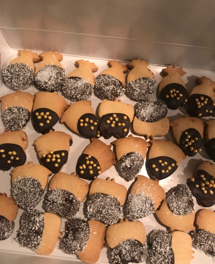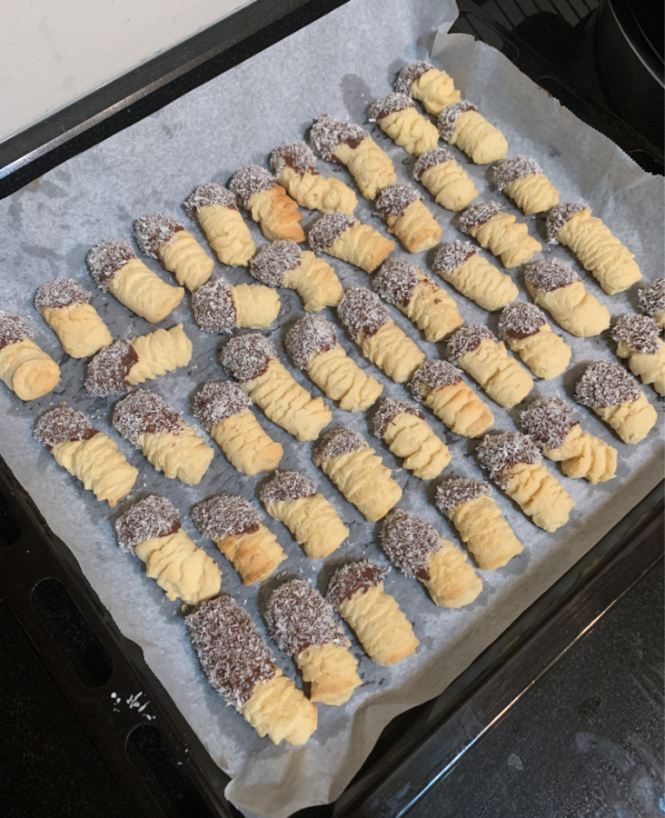 - Kurabiyeler soğuduktan sonra ister sade olarak, isterseniz önce eritilmiş çikolataya ardından hindistan cevizine bulayarak veya iki tanesinin arasına çikolatalı fındık kreması sürüp kenarlarını hindistan cevizine bulayarak tüketin.