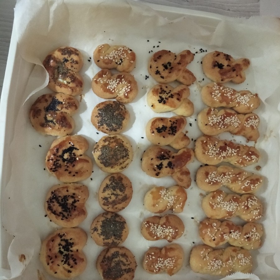 6. Üzerlerine yumurta sarısı sürüp susam, mavi haşhaş tohumu veya çörek otu serpin,