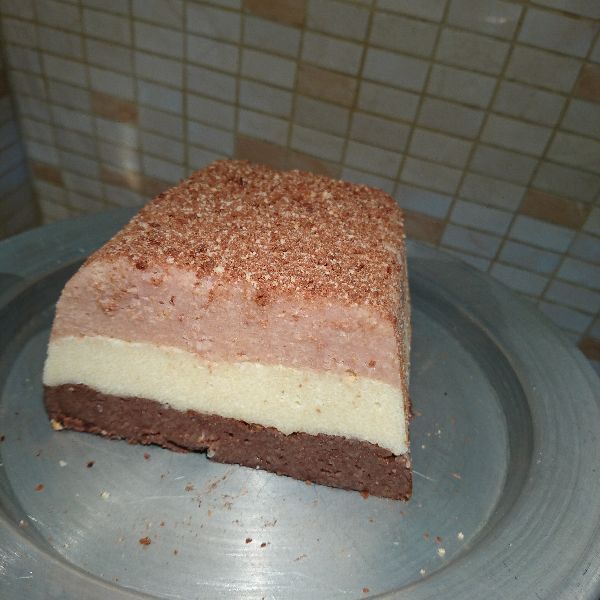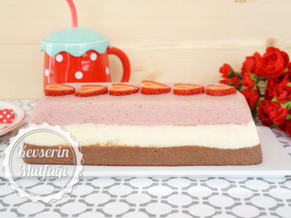 Bir diğer püf noktası ise pişme sırası. Hepsini aynı anda farklı tencerelerde pişireyim de çabucak olsun demeyin. Bir katı döktükten sonra katılaşması için biraz beklemek gerekiyor katların birbirine girmemesi için. Bu yüzden birini hazırlayıp kalıba dökün. O sırada ikinci katı hazırlayın. İkinci kat hazır olduğunda ilk kat zaten katılaşmış olacak, ikinci katı dökün. İkinci kat katılaşırken de üçüncü katı hazırlayın. Gözünüz korkmasın tek tek uğraşılıyor diye, yaklaşık 30 dakikada hazır olacaktır tatlınız.