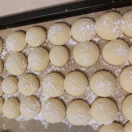 - Dolaptan çıkarıp cevizden küçük parçalar koparıp yuvarlayın,