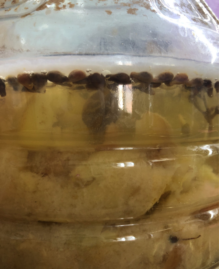- Tülbenti çıkarıp kapağını sıkmadan kapatıp (ya da tülbenti 4-5 kat katlayarak sıkıca bağlayıp) 30-45 gün daha karıştırmadan, sirke anası oluşana kadar bekletin,