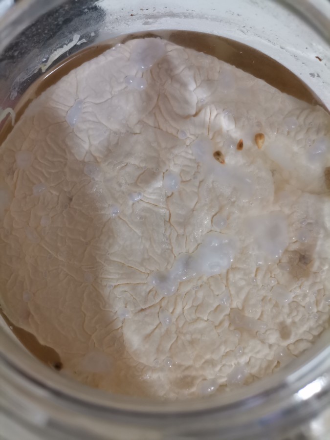 - Tülbenti çıkarıp kapağını sıkmadan kapatıp (ya da tülbenti 4-5 kat katlayarak sıkıca bağlayıp) 30-45 gün daha karıştırmadan, sirke anası oluşana kadar bekletin,
