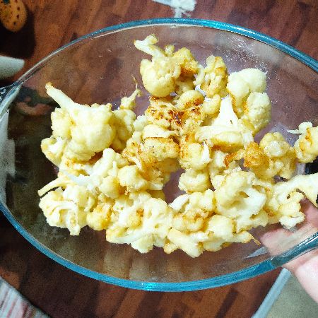 Karnabahar kızartmasıyla ilgili iki şeyin altını çizmek istiyorum. Birincisi karnabaharları fazla haşlamayın ki kullanırken dağılmasınlar. Biraz dişe gelsinler. İkincisi karnabaharları kızarttıktan sonra hiç bekletmeden hemen servis edin. Bekledikçe yumuşayacaklardır. Vegan karnabahar kızartmalarınızı ketçap veya vegan yoğurtla servis edebilirsiniz.