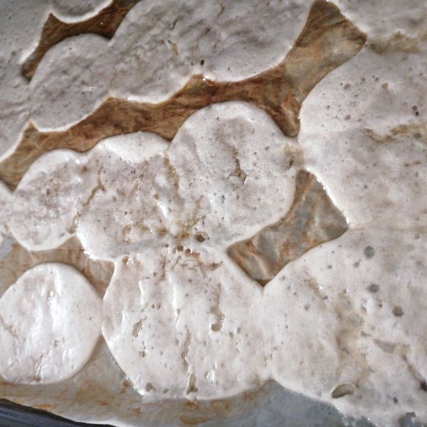 - Karışımı yağlı kağıt serilmiş bir tepsiye tatlı kaşığıyla parça parça koyun,