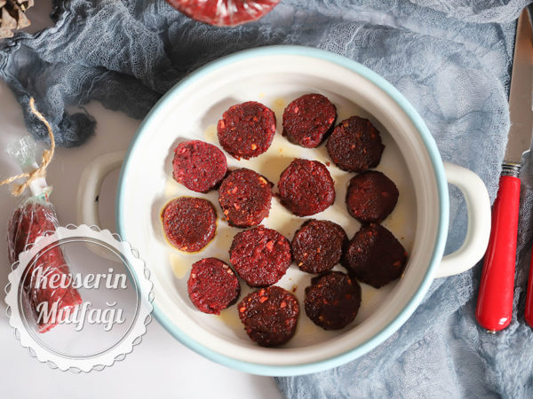 - Karışım el dayanacak sıcaklığa geldikten sonra streç filme sarıp sucuk şekli verin.